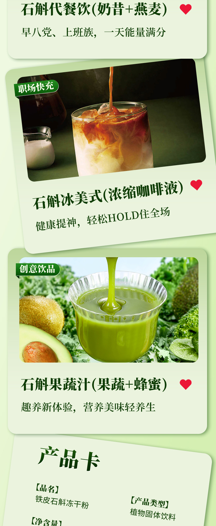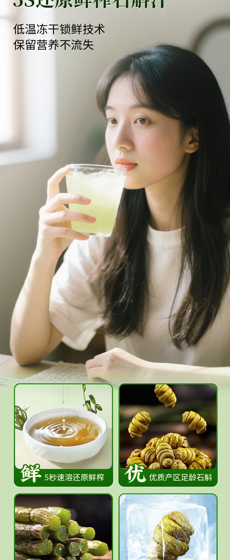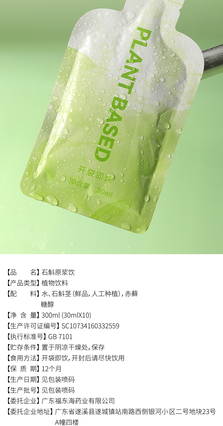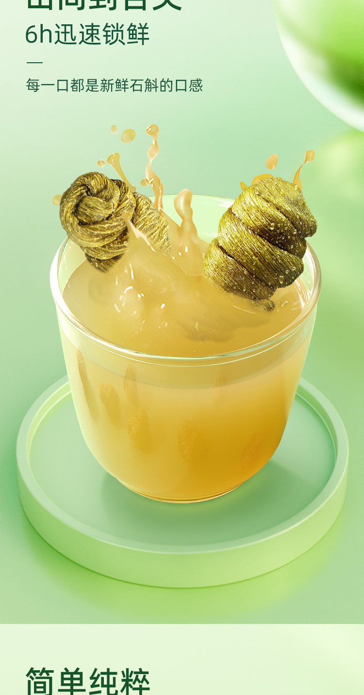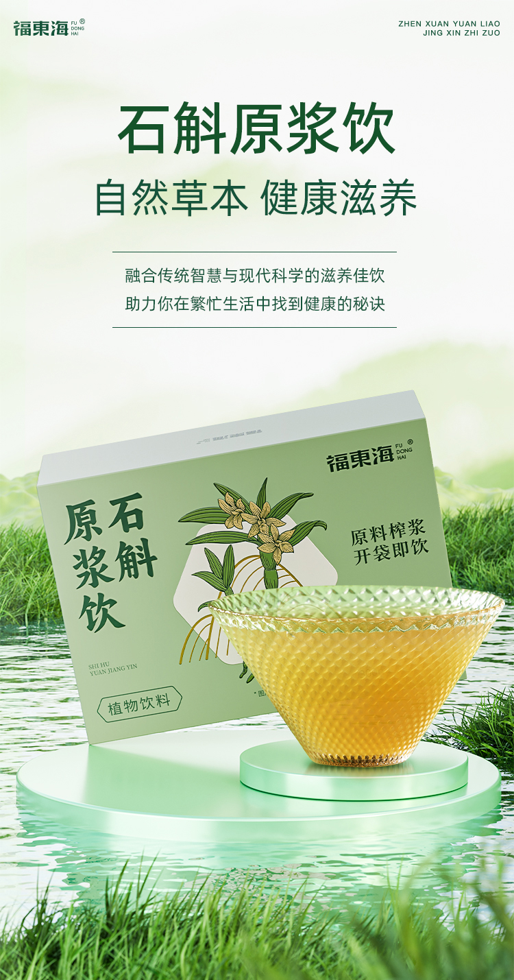 自然草本,健康滋养。甄选道地铁皮石斛鲜条,通过破壁萃取、低温浓缩、瞬时灭菌等工艺制作而成,开袋即饮,无需煎煮泡发,轻松享受滋养。