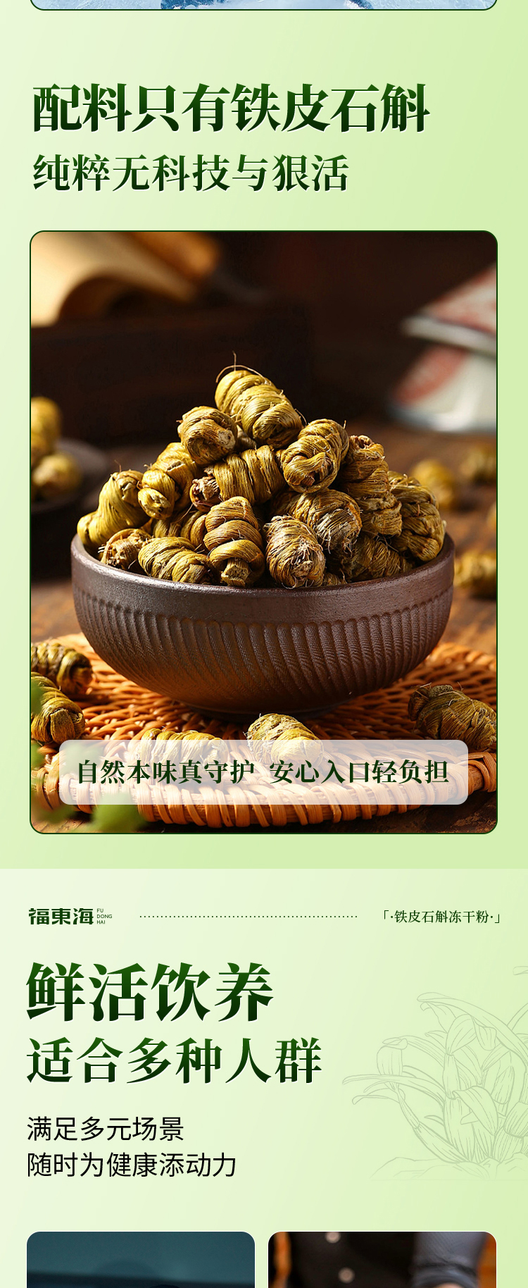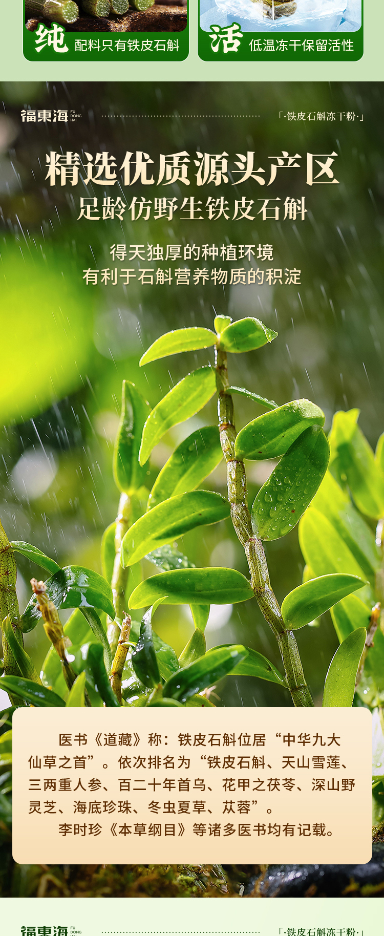 福东海严选道地源产高品质石斛,源自浙江乐清-中国铁皮石斛之乡,1 5cm大颗粒石斛 浓浓的胶质补给,营养更卓越。