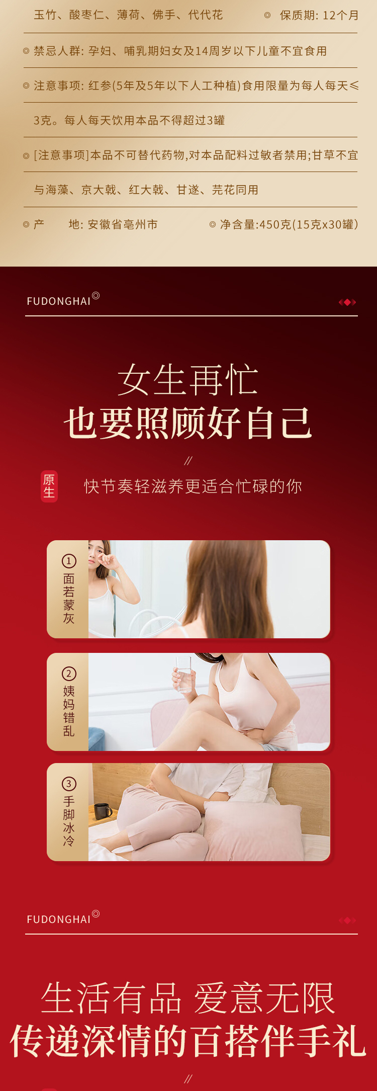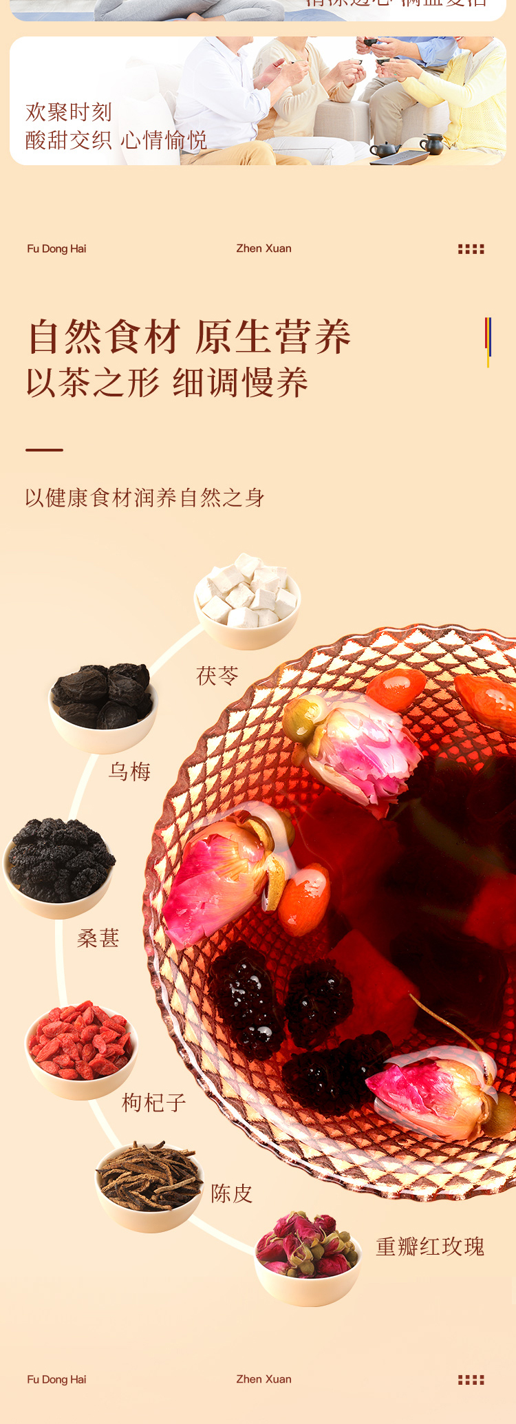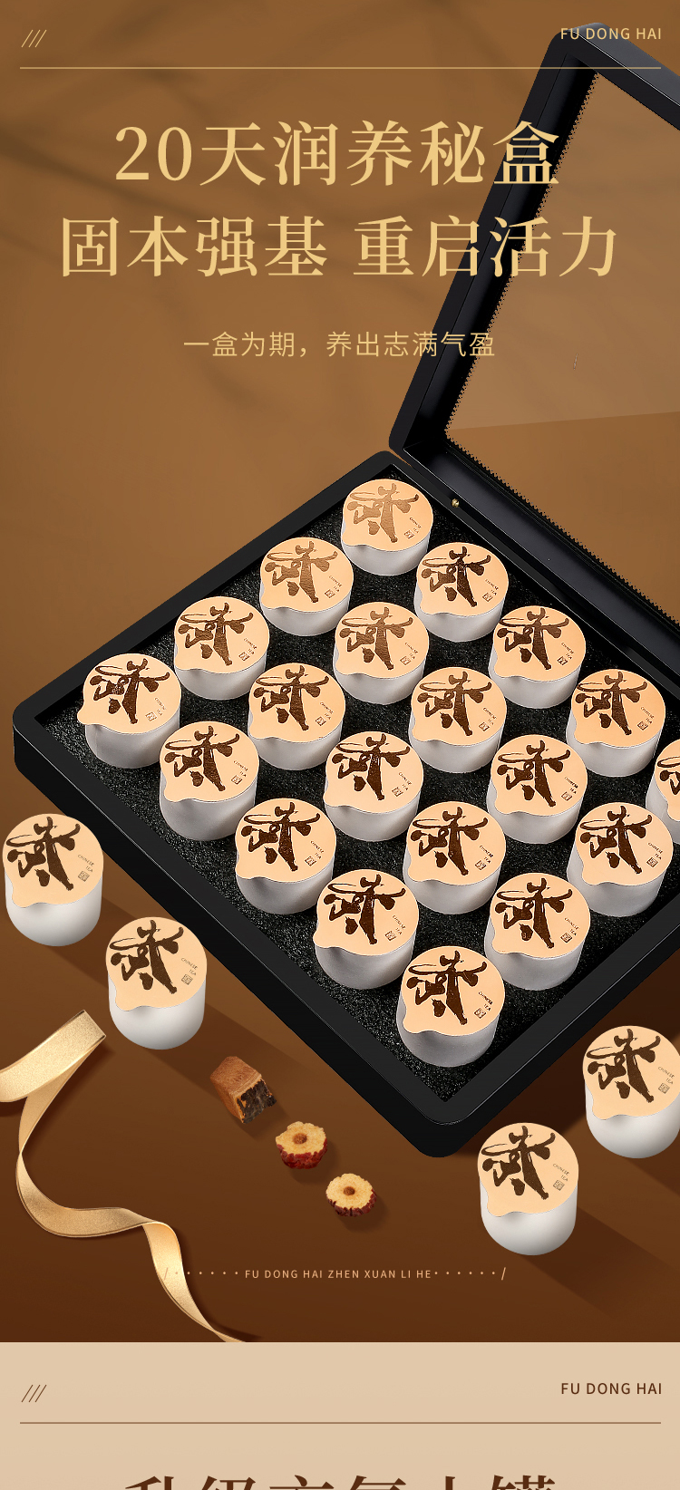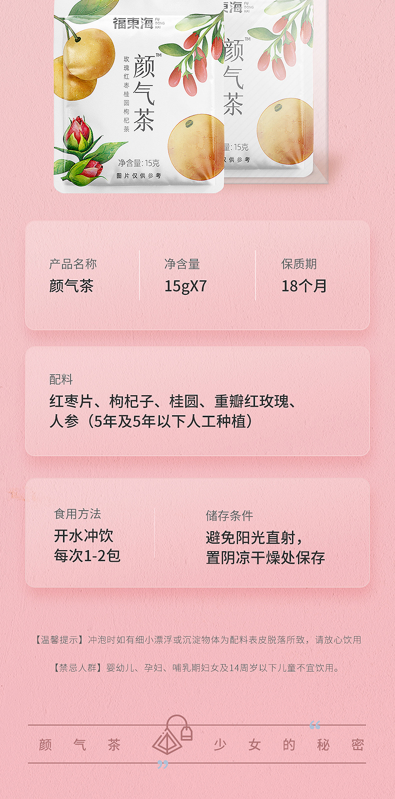 红颜靠养不靠妆,以茶之形,细调慢养。25味阿胶红参桂圆玫瑰花茶严控配比,以二十五种食材相辅相成,独立计量小罐,方便食用。