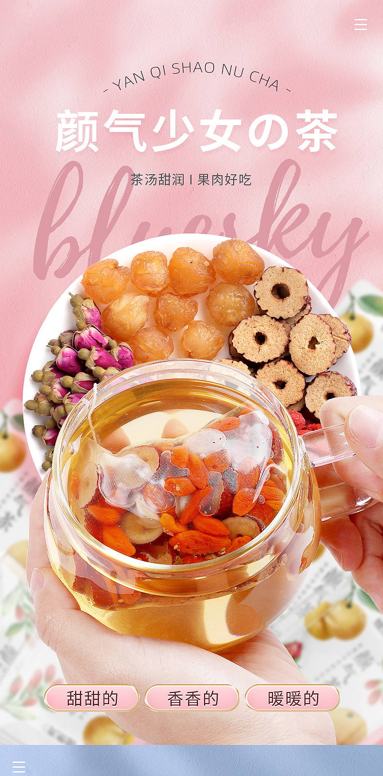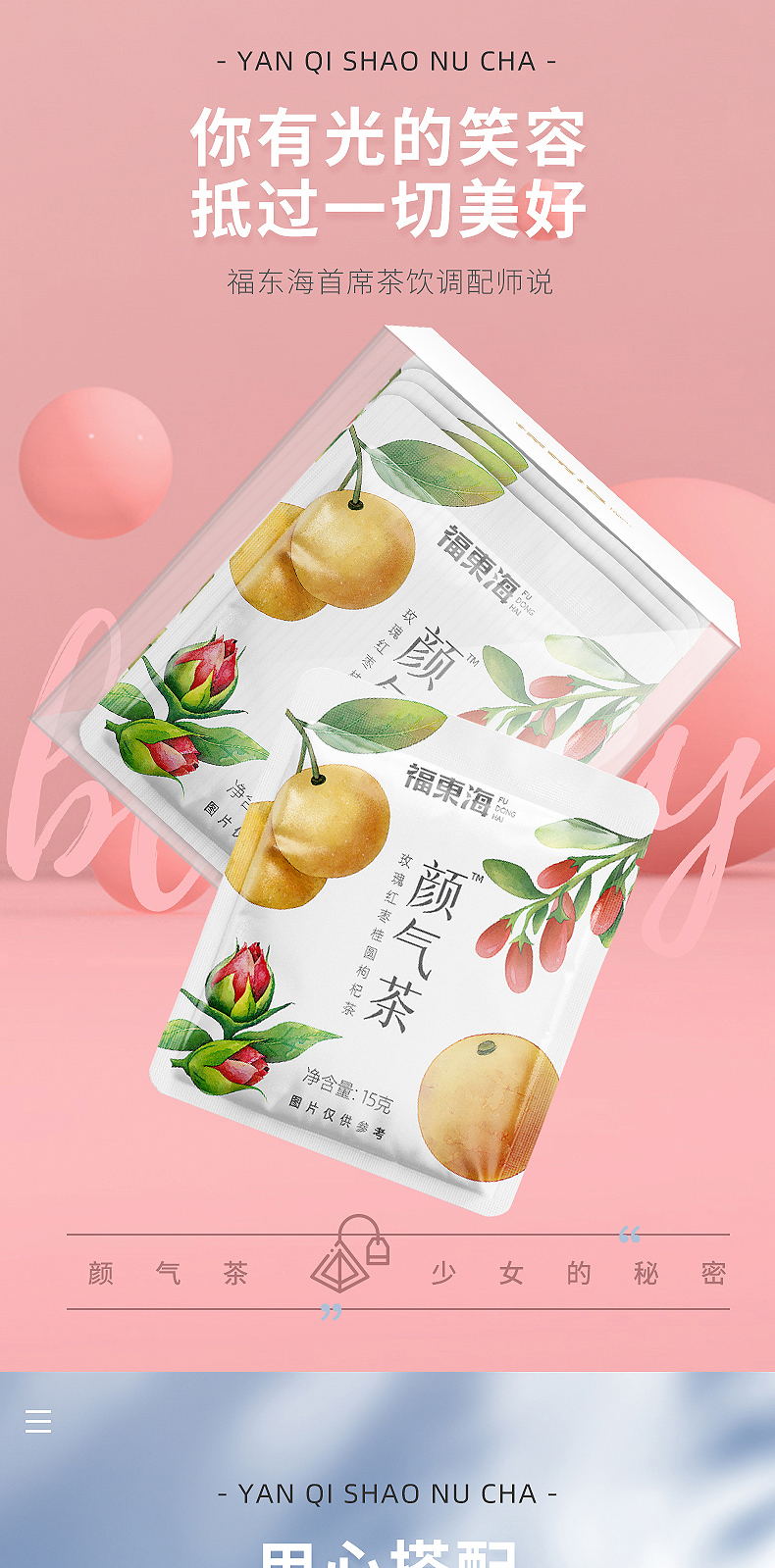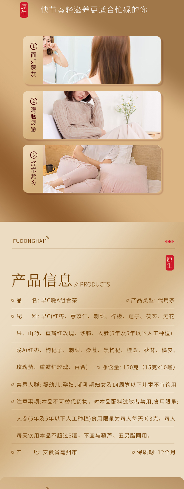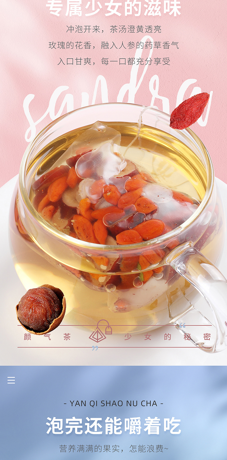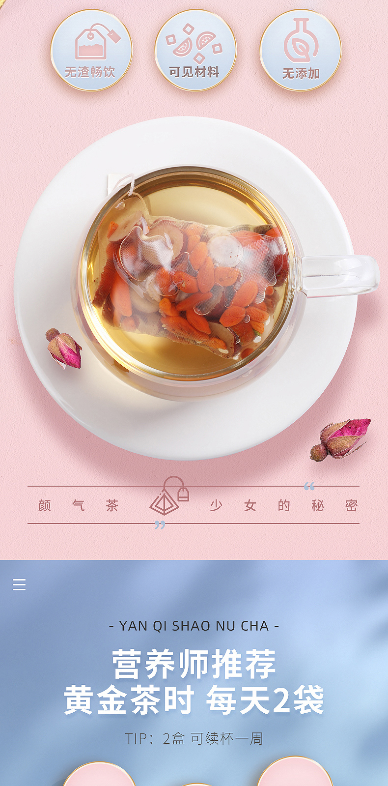 红颜靠养不靠妆,以茶之形,细调慢养。25味阿胶红参桂圆玫瑰花茶严控配比,以二十五种食材相辅相成,独立计量小罐,方便食用。