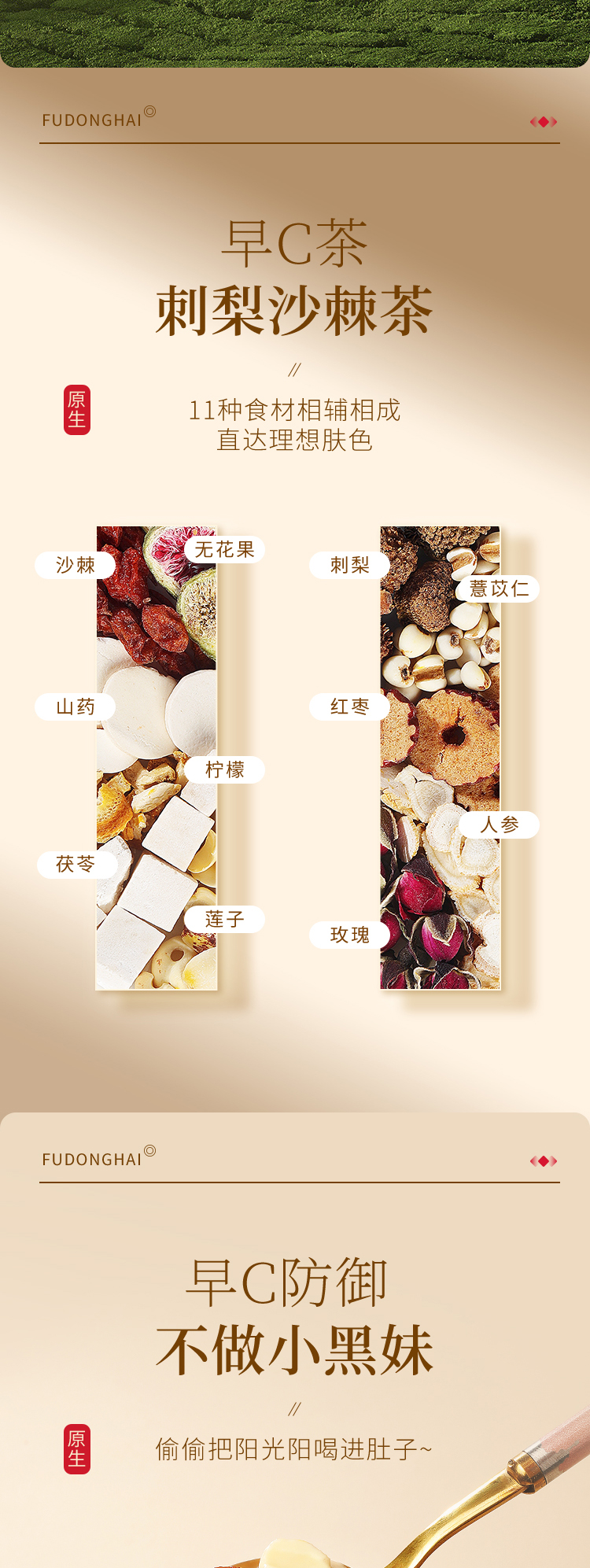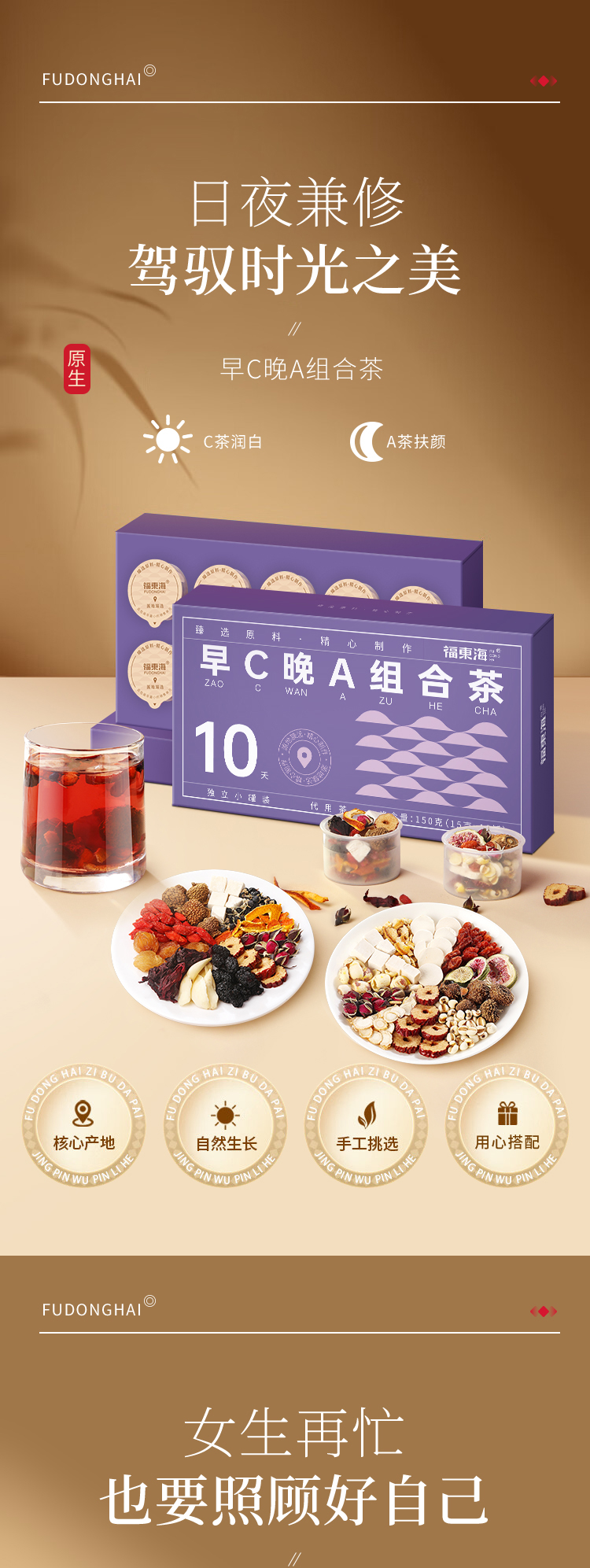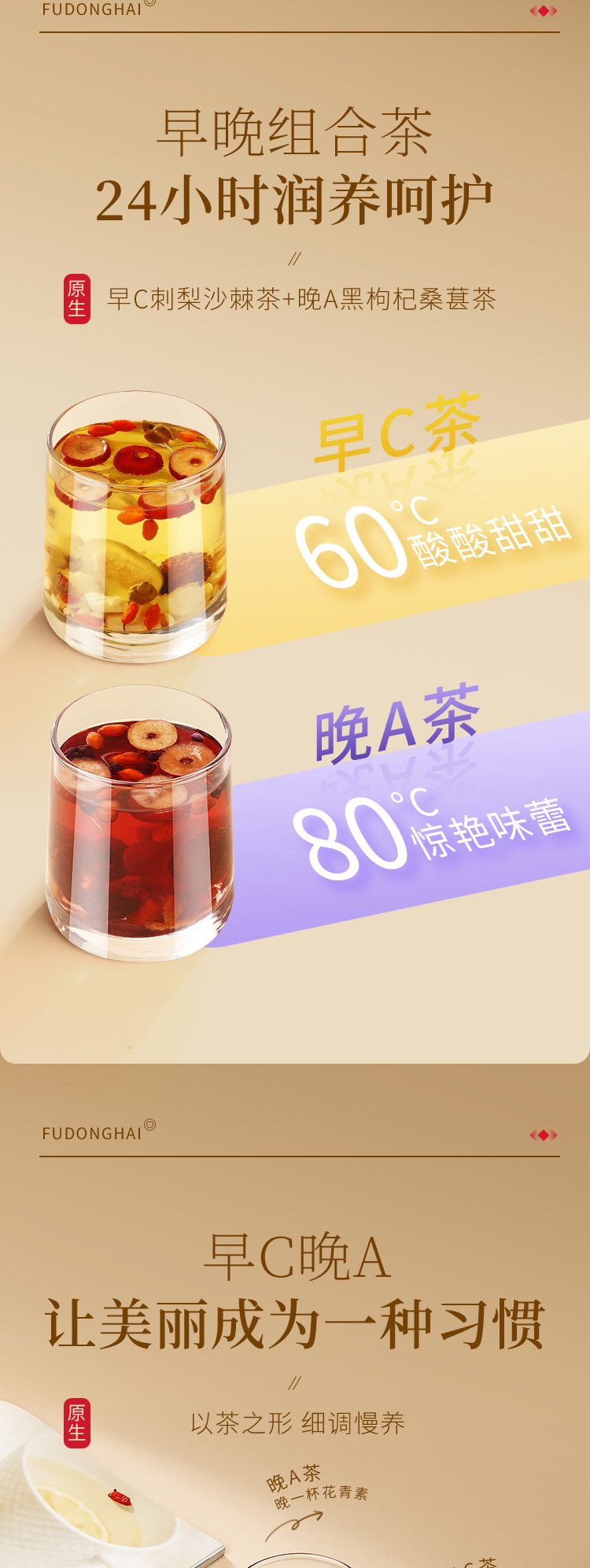早C刺梨沙棘茶+晚A黑枸杞桑葚茶,二十四小时滋养呵护,15克装大份量,独立计量小罐,氮气密封,方便食用,一罐续航一整天。