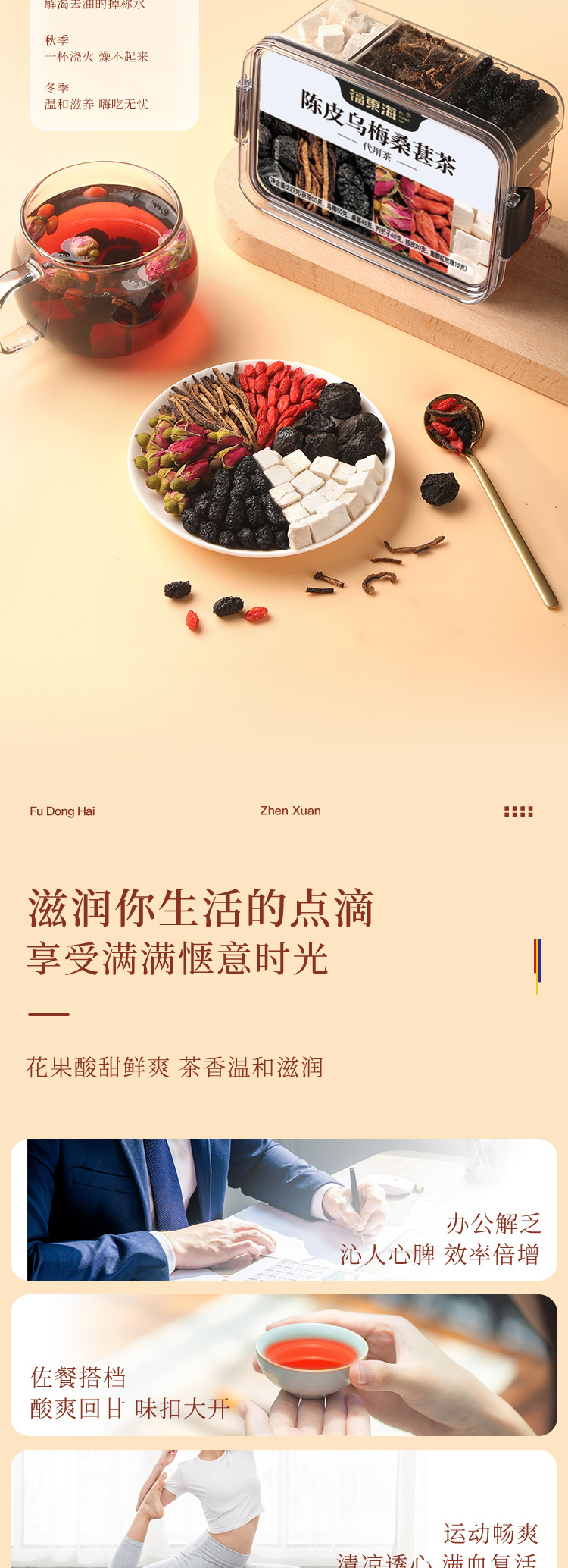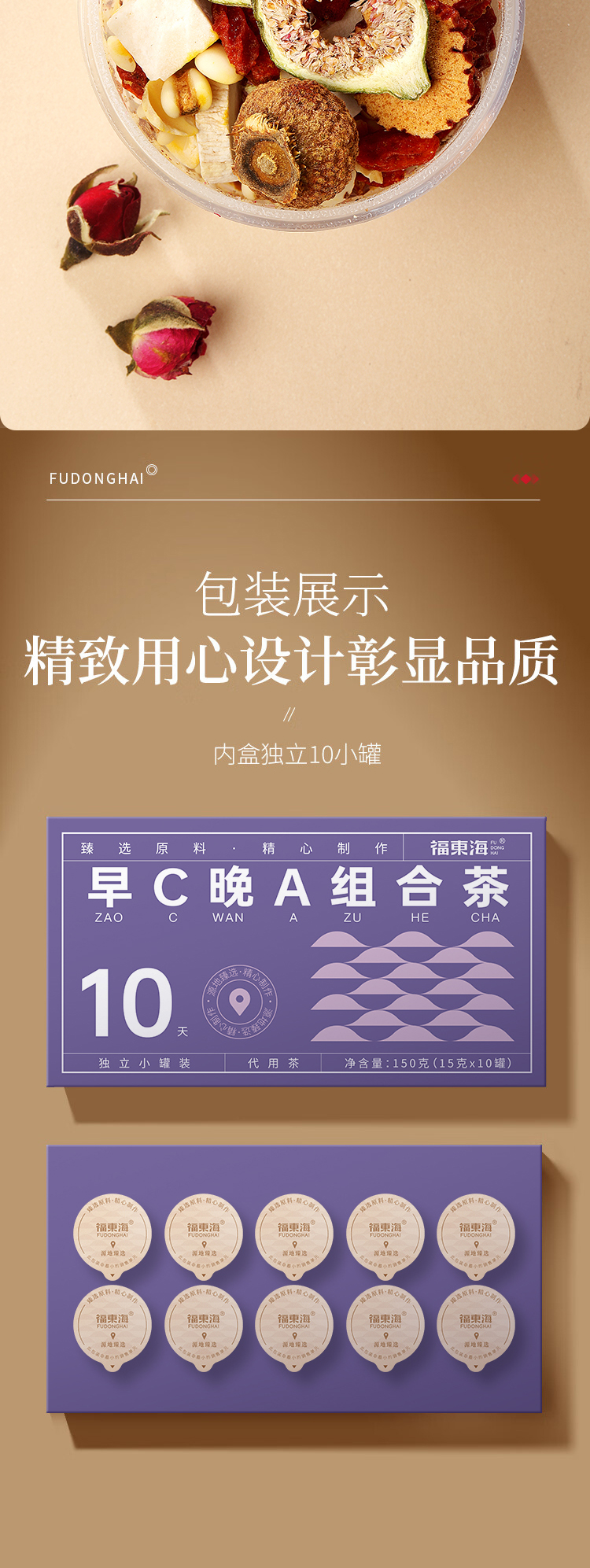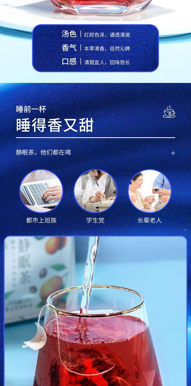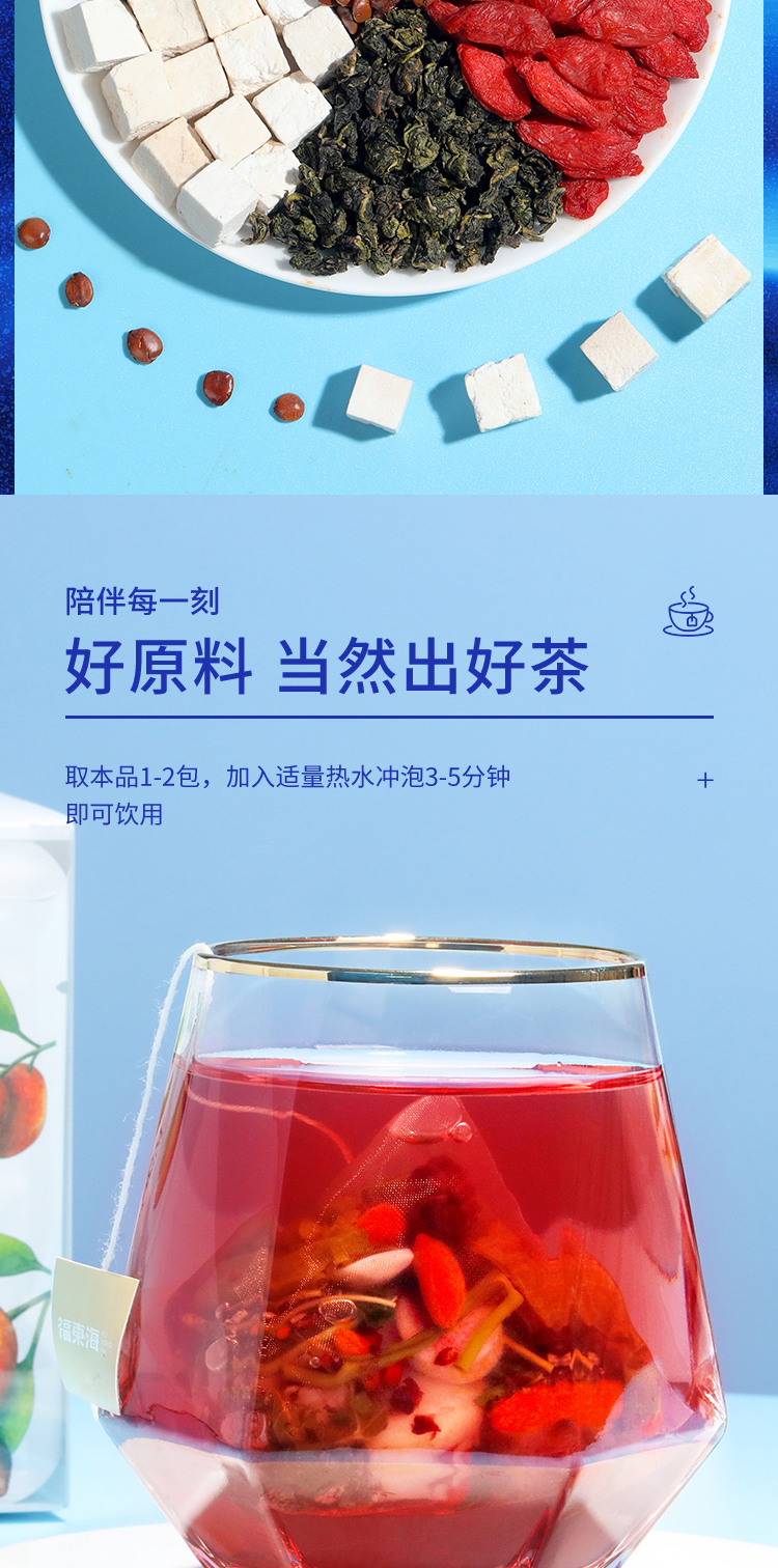 福东海汲取睡眠古方精髓,结合失眠人群的特点,加以改进升级、组方配比而成,严苛精选七味好料,为好梦助力。
