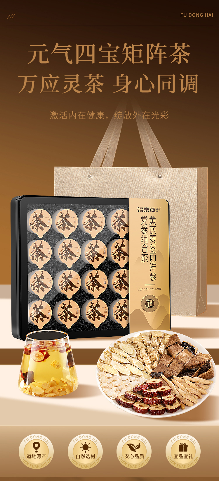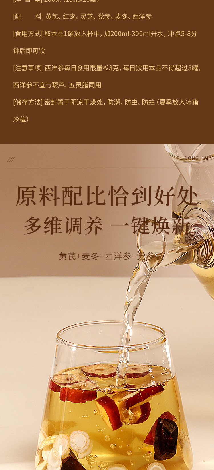 简单的配方,简单的健康哲学。精选长白山优质西洋参,真·绵阳带芯麦冬,甘肃原生黄芪片,甘肃中间段党参,科学配比,独立计量小罐,满足整月饮养所需。