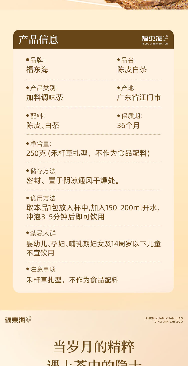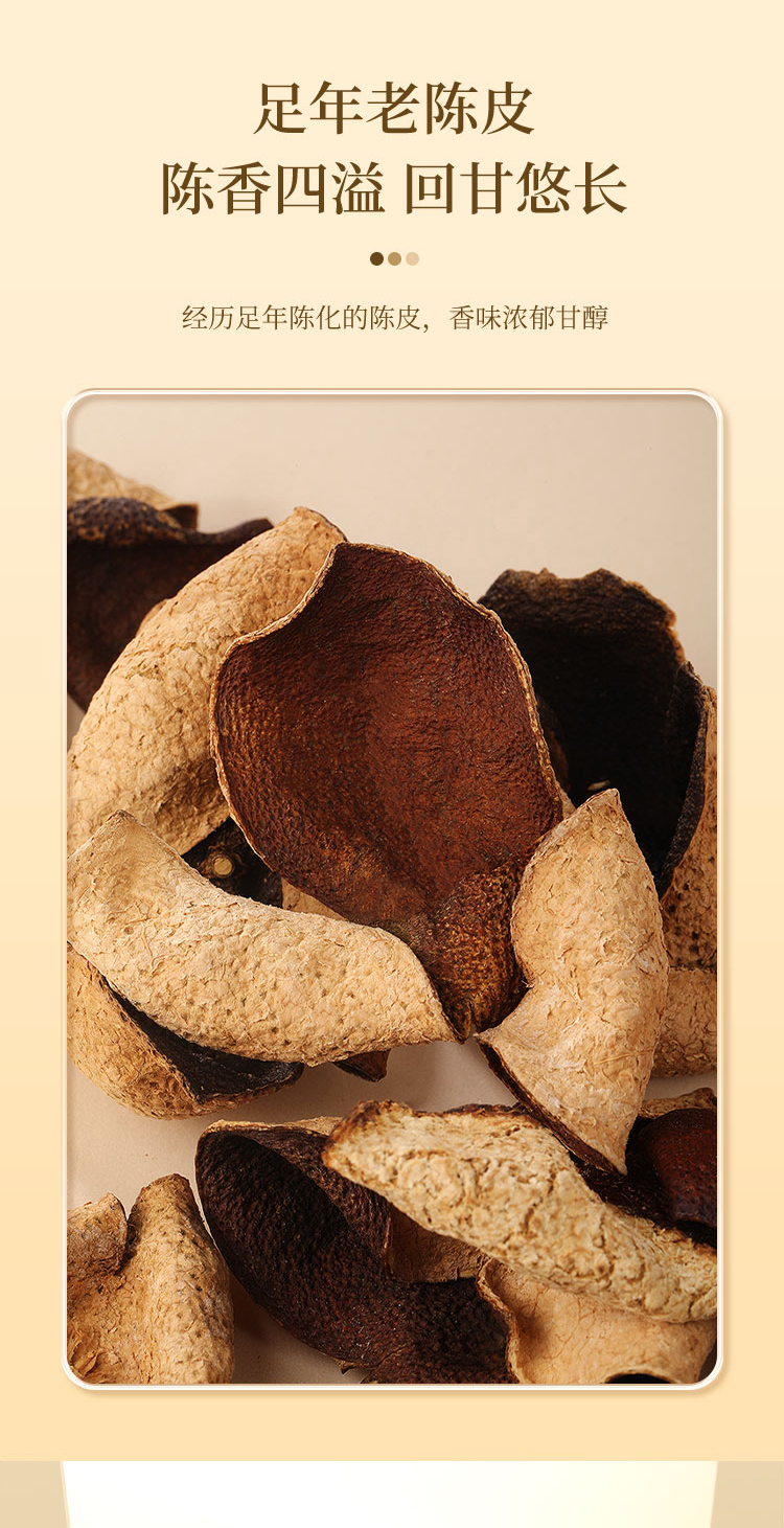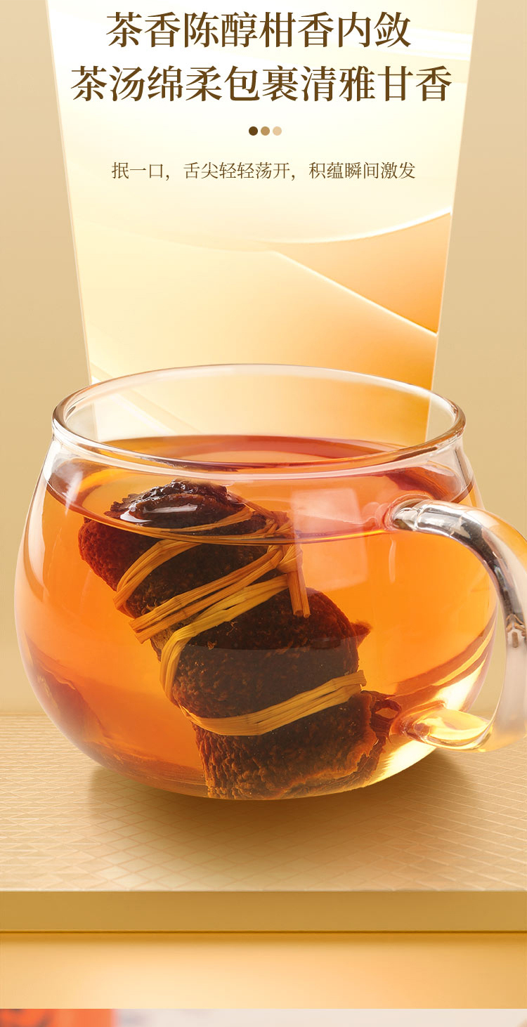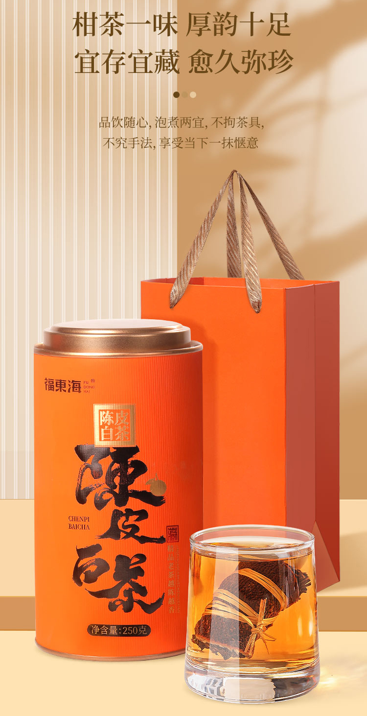 寿眉老白茶+足年老陈皮,茶香陈醇柑香内敛,茶汤绵柔包裹清雅甘香,品饮随心,泡煮两宜。