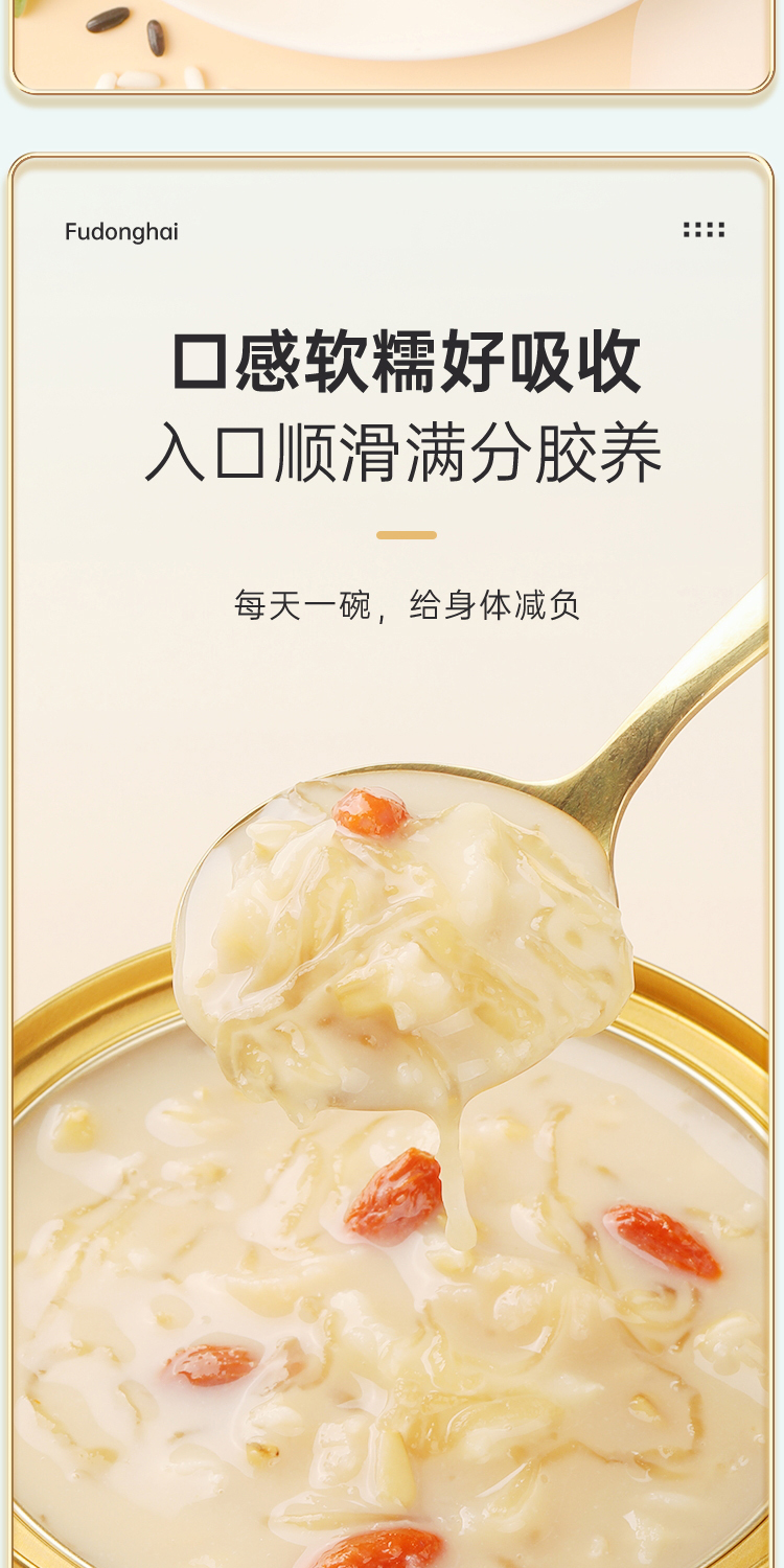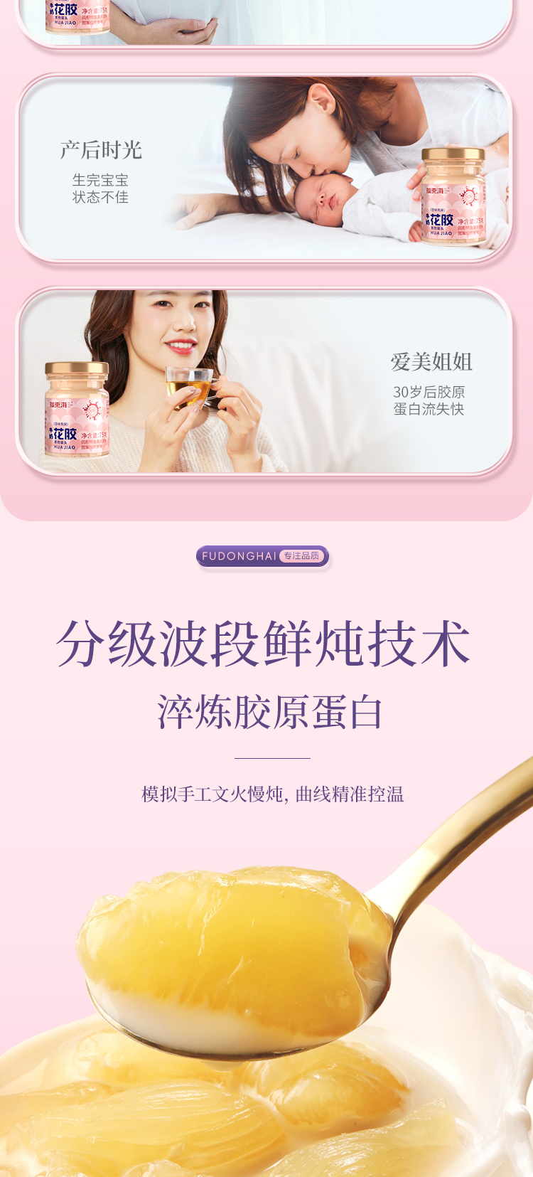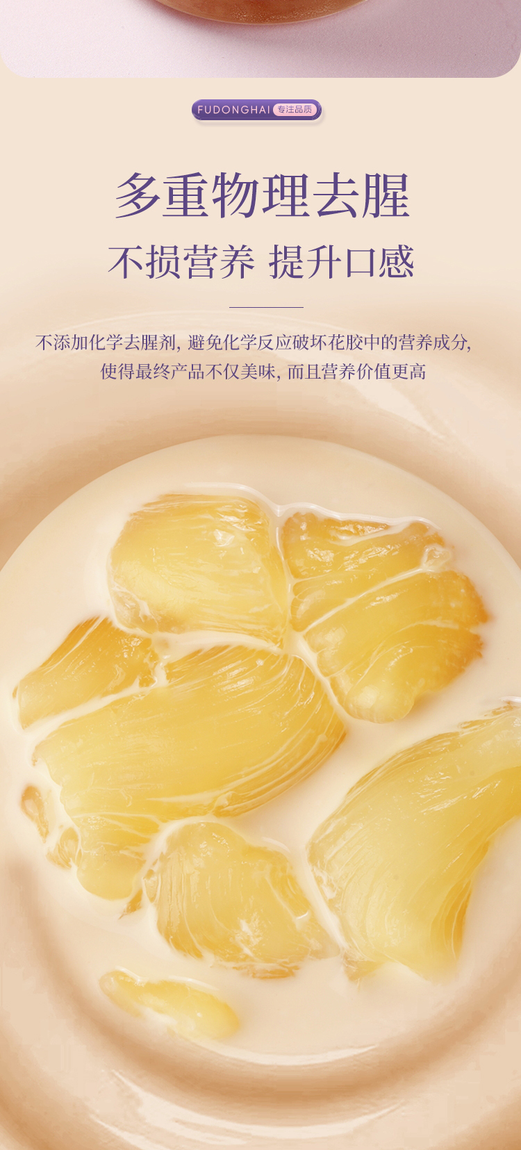 严选高品质花胶,胶质浓厚饱满,免泡发,免炖煮,开盖即食,由内而外浸润滋养,采用物理去腥,锁住营养轻松享受。