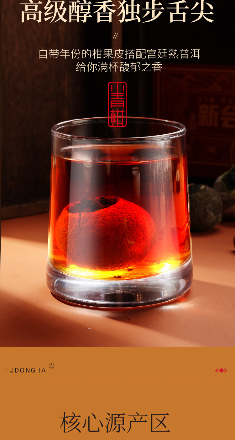 贵族柑礼,古典木箱,镌刻永恒的高雅品味。自带年份的柑果皮搭配宫廷熟普洱,醇和温润,木香萦绕,茶之鲜灵层层递进。